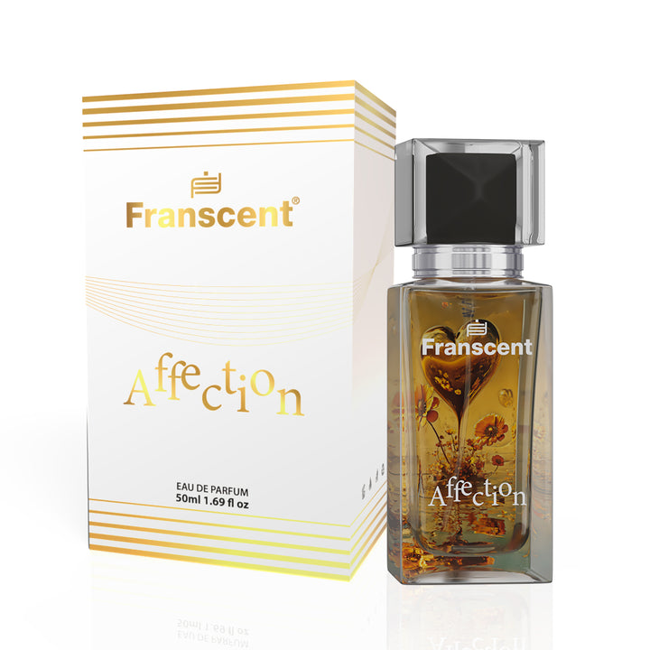 Affection by FRANSCENT is a soft, elegant, and feminine fragrance for women who love beauty in every detail. It blends fresh fruits and beautiful flowers with a warm, gentle base. This perfume feels like walking through a blooming garden on a sunny morning — delicate, romantic, and full of charm.