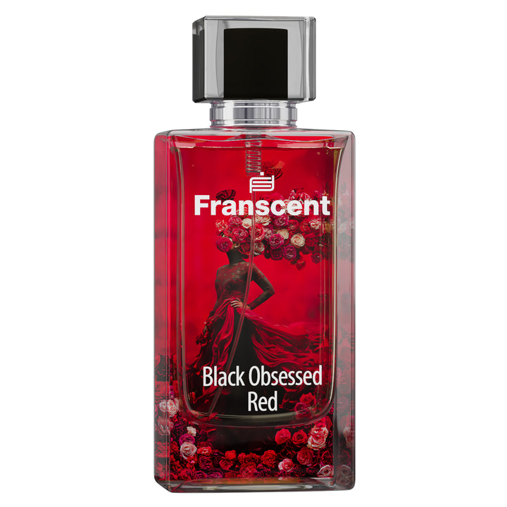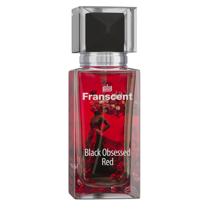 Black Obsessed Red perfume, Black Opium Over Red impression in Pakistan, FRANSCENT women’s perfume, sweet and warm fragrance, cherry vanilla perfume, long-lasting ladies perfume, seductive women’s scent, premium perfume gift for her.