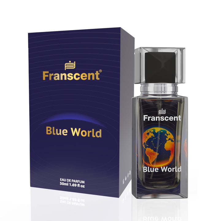 Blue World by FRANSCENT is a fresh, classy, and confident scent for men. Blue World mixes fresh citrus, cool herbs, and warm woods to create a fragrance you can wear anywhere — from the office to a dinner date. It’s a scent that feels clean, stylish, and powerful, without being too strong.