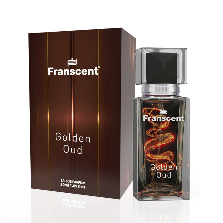 Golden Oud perfume, Gucci Oud impression in Pakistan, FRANSCENT niche perfume, oud floral fragrance, long-lasting unisex perfume, Gucci-inspired scent, luxury oriental perfume, premium evening fragrance
